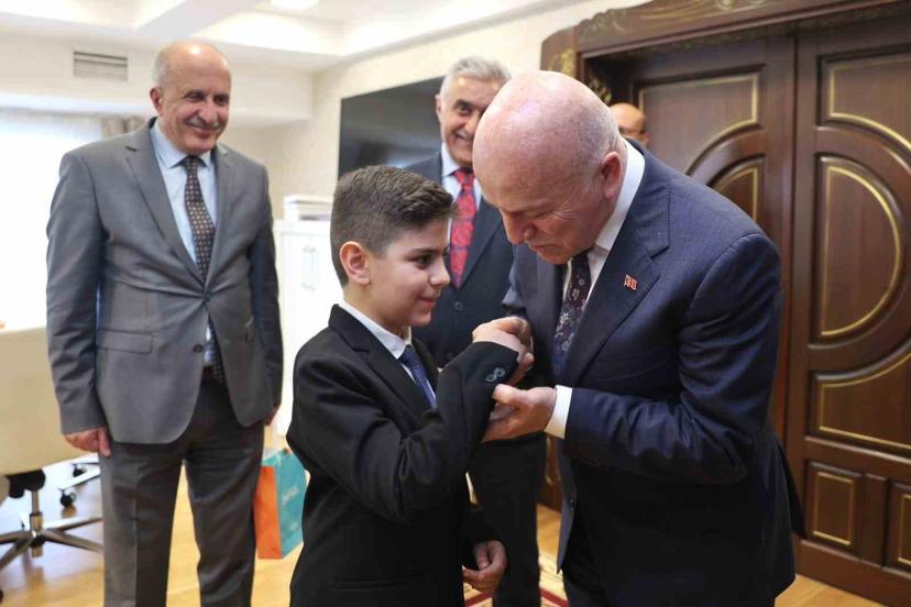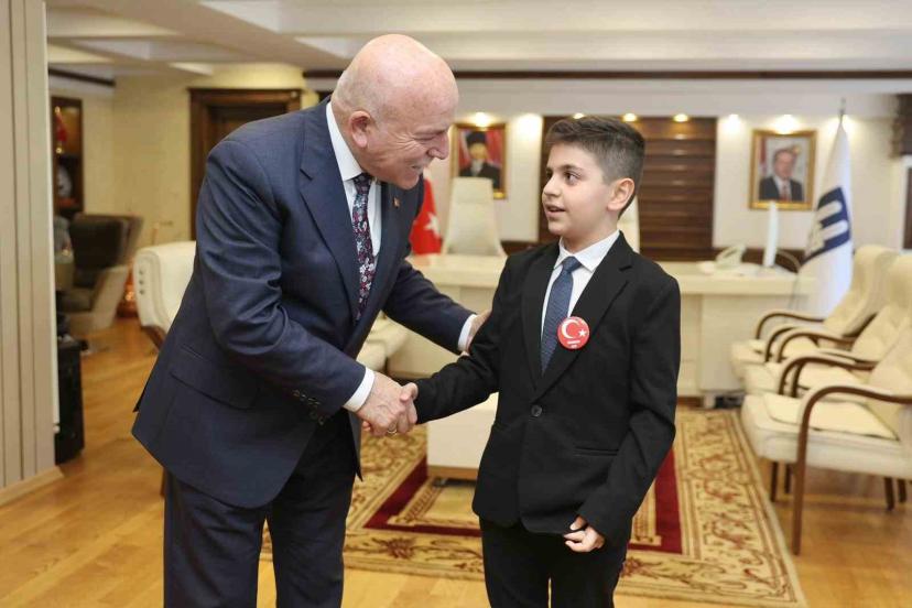 23 Nisan Ulusal Egemenlik ve Çocuk Bayramı vesilesiyle, başkanlık makamını Yıldızkent İlkokulu öğrencisi Mahmut Alp Sarıca’ya emanet ettiğini ifade eden Erzurum Büyükşehir Belediye Başkanı Mehmet Sekmen, " Onlar bizim en kıymetli hazinemiz, yarınlarımızın güvencesi. Aziz milletimizin köklü tarihinden aldığı ilhamla, geleceğe yürüyen bu aziz şehirde gözümüzün nuru çocuklarımız sadece birer misafir değil; bu toprakların asıl sahibidir, yarınlarımızın mimarıdır. Mahmut Alp evladımızın gözlerinde gördüğümüz azim, yüreğinde hissettiğimiz sorumluluk ve ifade ettiği düşüncelerdeki olgunluk; bizlere gösteriyor ki bu milletin istikbali emin ellerdedir. Bu vesileyle; 23 Nisan Ulusal Egemenlik ve Çocuk Bayramı’mızı kutluyor, başta Gazi Mustafa Kemal Atatürk ve silah arkadaşları olmak üzere tüm şehitlerimizi rahmet ve minnetle anıyorum" dedi.