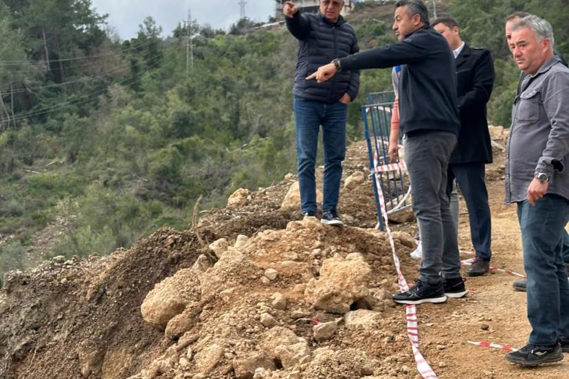 KEMER Belediye Başkanı Necati Topaloğlu, Ulupınar Mahallesi’ne bağlı Çıralı mevkisinde şiddetli yağış nedeniyle çöken yolda y...