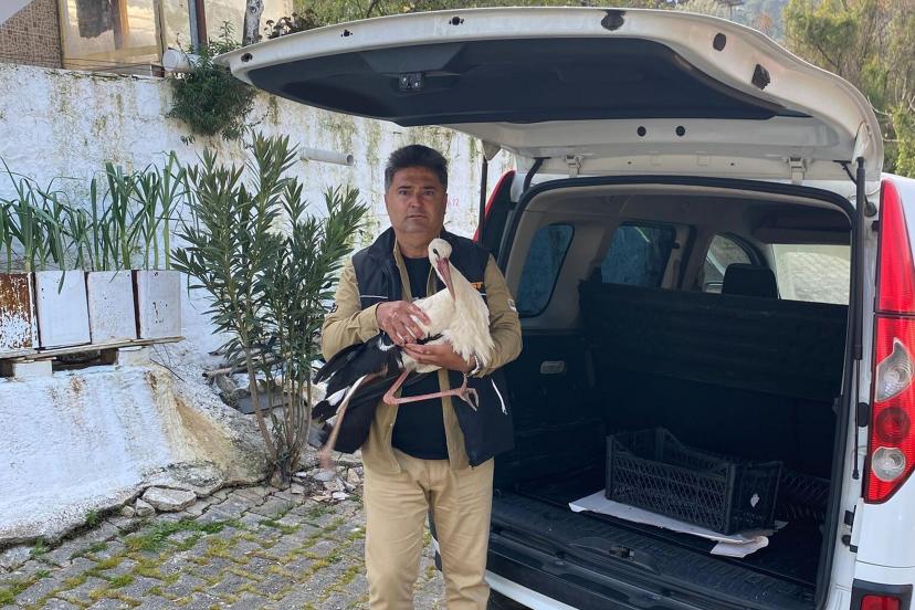MUĞLA'nın Ula ilçesinde bitkin düşmüş halde bulunan leylek, hayvan hastanesinde tedaviye alındı.