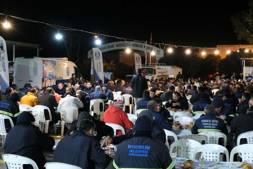 MUĞLA'nın Bodrum ilçesi Belediye Başkanı Tamer Mandalinci, Temizlik İşleri Müdürlüğü tarafından düzenlenen sahur programında personele seslenip, "Bodrum'un ve çevremizin temiz kalması adına gece gündüz demeden, mesai mefhumu gözetmeden sahada çalışan sizlersiniz. Hepinizin emeğine sağlık. Bizler de sizlerin daha konforlu şartlarda çalışabilmesi, daha güzel hizmetler üretmesi ve Bodrum'a daha fazla katkı sağlaması adına durmadan, canla başla çalışmaya devam edeceğiz" dedi.