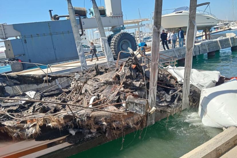 MUĞLA'nın Bodrum ilçesindeki marinada çıkan, 7 motoryatın battığı ve 1 motoryatın da kısmi hasar aldığı yangının ardından bölgede enkaz kaldırma çalışmaları başladı.
