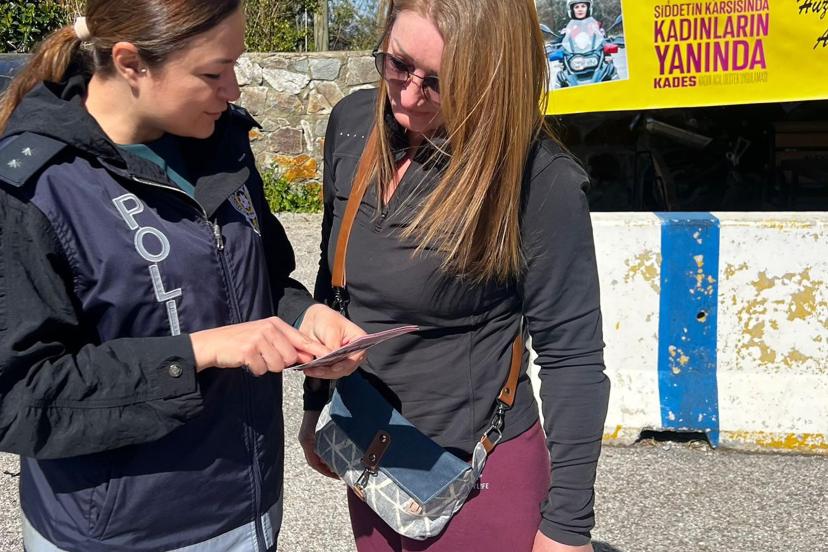 Bodrum'da polisten kadınlara karanfilli KADES bilgilendirmesi