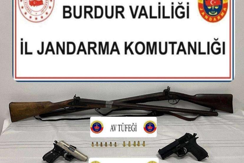 BURDUR'da jandarma ekiplerince 5 şüphelinin adresine yapılan baskında 9 ruhsatsız tabanca, 8 ruhsatsız av tüfeği, 8 tabanca ş...