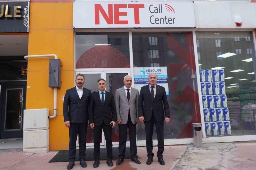 TOBB Yönetim Kurulu Üyesi ve ETSO Yönetim Kurulu Başkanı Saim Özakalın ile İŞKUR Erzurum İl Müdürü Abdulkadir Mutlu, beraberlerindeki heyetle birlikte çağrı merkezini ziyaret ederek yetkililerden bilgi aldı.