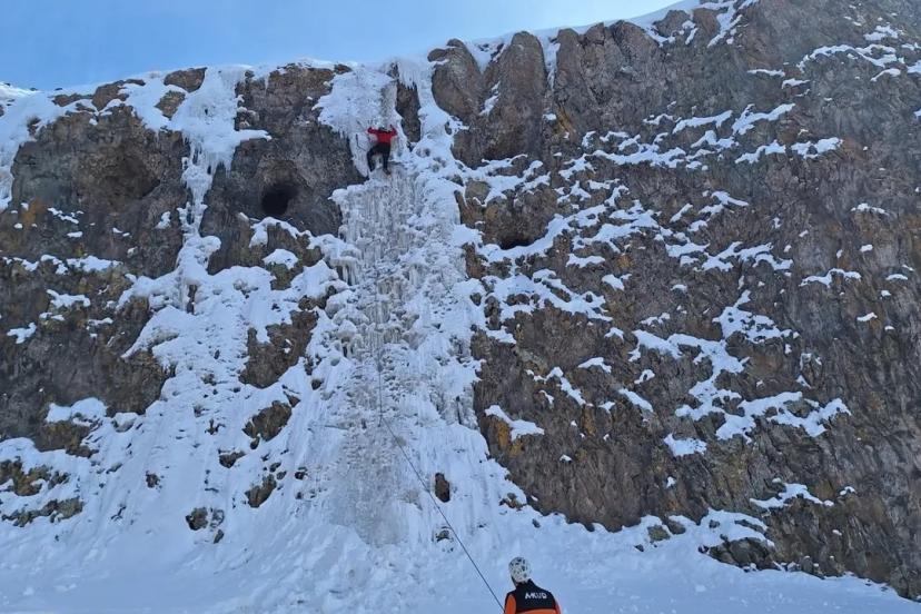 Ağrı’nın Diyadin ilçesinde bulunan Diyadin Kanyonu’nda kış mevsiminde oluşan buz şelalesinde doğa sporcuları tarafından buz tırmanışı gerçekleştirildi.