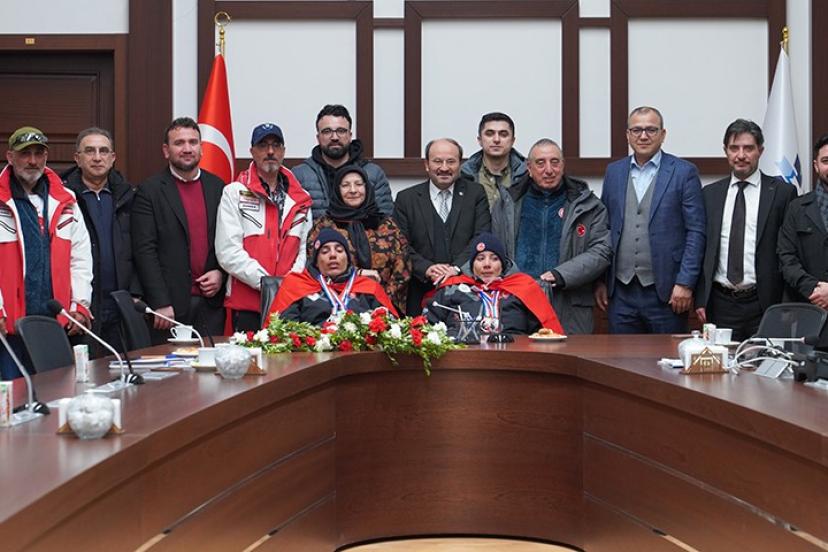 Karşılamanın ardından Milli Sporcuları, teknik heyeti ve sporcuların ailesini ETÜ’de ağırlayan Rektör Çakmak, azmin engel tanımadığını ifade ederek: "Aliye Zeynep ve Muhsin Murat’ın uluslararası arenada elde ettiği sonuçlar, azim ve kararlılıkla neler başarabileceğinin en güzel örneğidir. Geçtiğimiz aylarda Avusturya’da düzenlenen Virtus Open Alpin Kitzbühel Kayak Yarışması’nda sporcularımız dört madalya kazanmıştı. Her seferinde üzerine koyarak devam eden sporcularımız bu şampiyonada ise altı madalya kazanarak ülkemize döndüler ve hepimize büyük bir gurur daha yaşattılar. Bu süreçte sporcularımızın daima yanında olan ebeveynlerine, antrenörlerine ve destekçilerine bir kez daha şükranlarımı sunuyorum. Önümüzdeki şampiyonalarda daha büyük başarılara imza atacaklarına gönülden inanıyor ve başarılarının devamını diliyorum" diye konuştu.