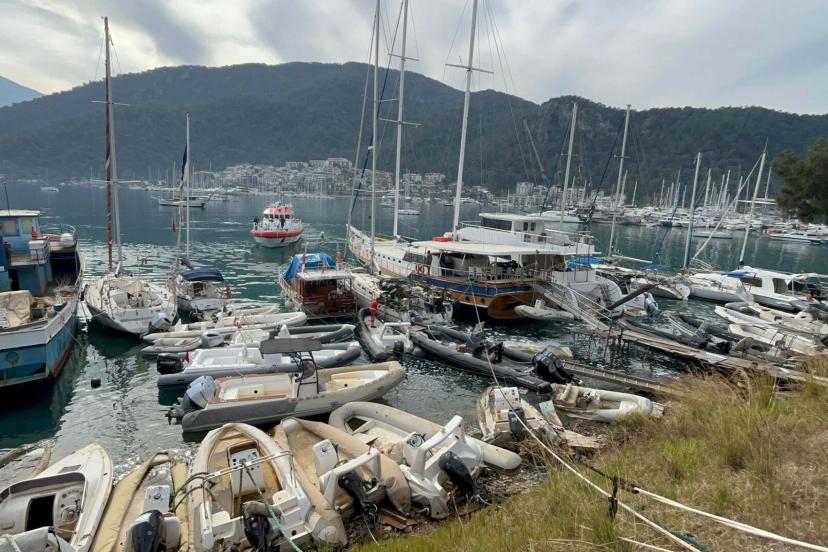 MUĞLA'nın Fethiye ilçesinde İcra Daireleri Kaçakçılık ve Deniz Araçları Men İstasyonu'nda bağlı yelkenli tekne, çıkan yangında kullanılamaz hale geldi.