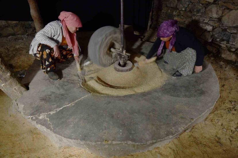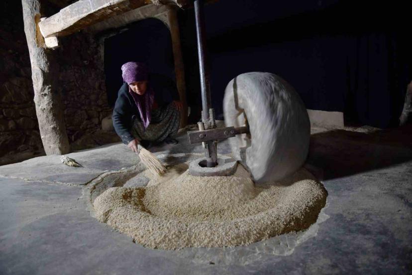 Bitlis’in Hizan ilçesine bağlı Karbastı köyü ve bağlı bulunan mezralarda ekilen çeltikler, asırlık su değirmeninde pirinç haline getiriliyor.