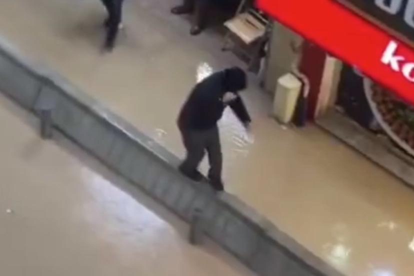 Suyun içine girmemek için mücadele veren vatandaşların o anları da bölgedeki bir başka vatandaşın kamerasına yansıdı.
