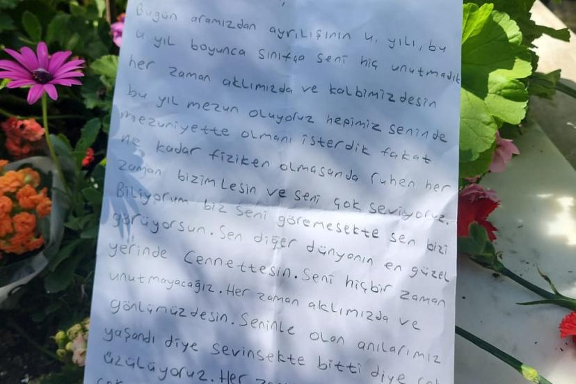 Mektupta şu ifadeler yer aldı: "Merhaba Melin, bugün aramızdan ayrılışının 4'üncü yılı. Sınıfça seni hiç unutmadık. Her zaman aklımızda ve kalbimizdesin. Bu yıl mezun oluyoruz. Hepimiz senin de mezuniyette olmanı isterdik fakat ne kadar fiziken olmasan da ruhen her zaman bizimlesin ve seni çok seviyoruz. Biliyorum, biz seni göremesek de sen bizi görüyorsun. Sen diğer dünyanın en güzel yerinde, cennettesin. Seni unutmayacağız. Her zaman aklımızda ve gönlümüzdesin. Seninle olan anılarımız yaşandı diye sevinsek de bitti diye çok üzülüyoruz. Her zaman bizimlesin. Seni çok seviyoruz çok da özledik cennet meleğimiz."