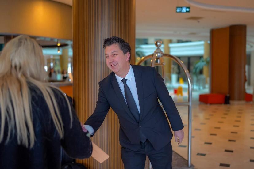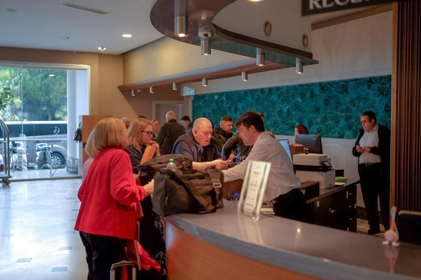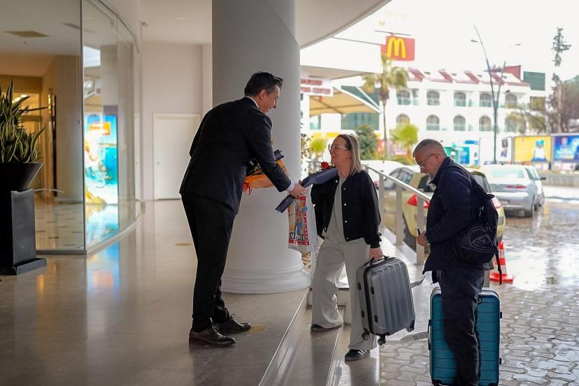 Marmaris’e 2026 turizm sezonunun açılışı kapsamında İngiltere’den gelen turist kafilesi, otel girişinde düzenlenen törenle çiçeklerle karşılandı.