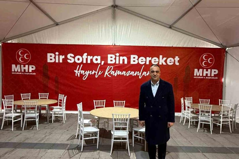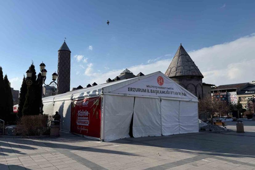 Milliyetçi Hareket Partisi Erzurum İl Başkanlığı tarafından organize edilen "Bir Sofra Bin Bereket" temalı iftar otağı, bir ay boyunca Lalapaşa Kent Meydanında hizmet verecek.