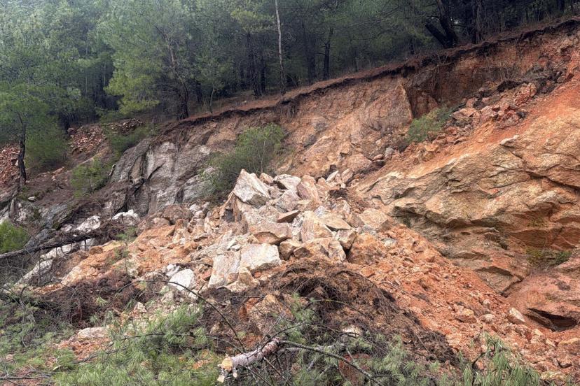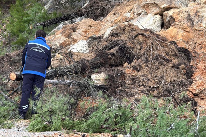 Muğla'da toprak kayması; yol kısmen kapandı