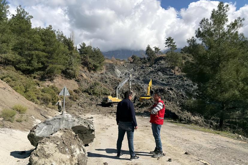 Muğla'da toprak kayması; yol ulaşıma kapatıldı