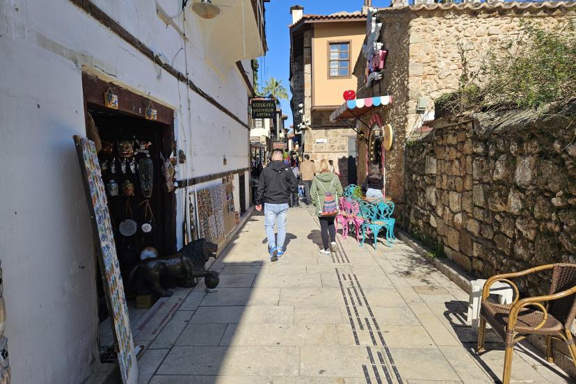 ANTALYA Kaleiçi'nde çocuklara şekerleme satılan işletmenin, karşısındaki hediyelik eşya dükkanı hakkında sokak üzerine kurula...