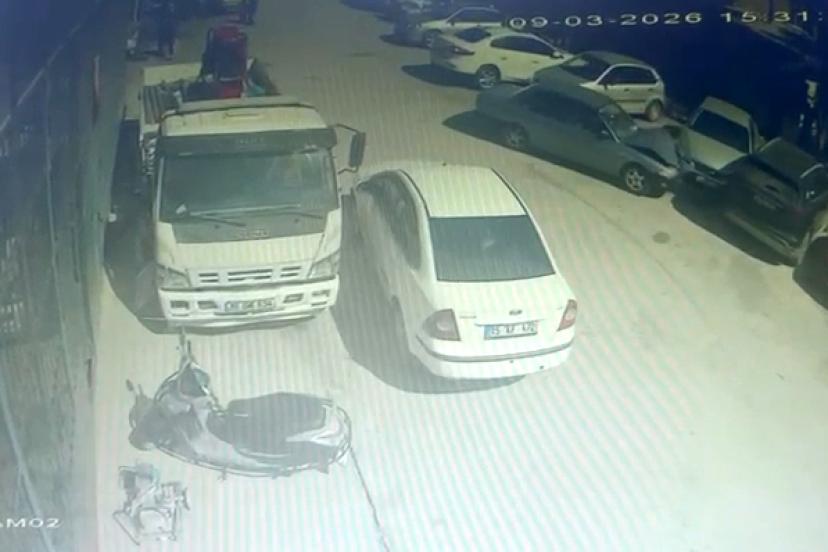 Küçük Sanayi Sitesi 3'üncü Sokak'ta saat 15.30 sıralarında; A.A.Ş. (86), kullandığı otomobilin direksiyon hakimiyetini kaybetti. Kontrolden çıkan araç, park halindeki otomobile çarptı. Daha sonra geri giden otomobil, bu kez tamirhanede bekleyen otomobillere çarparak durdu. 6 aracın hasar gördüğü kazada, A.A.Ş. ifadesi için polis merkezine götürüldü. Diğer yandan kaza, çevredeki iş yerinin güvenlik kamerasına yansıdı. Görüntülerde; otomobilin önce park halindeki otomobile çarpması daha sonra geri giderek tamirhaneye dalması, olayı fark edenlerin kaçmaya çalışması yer aldı.