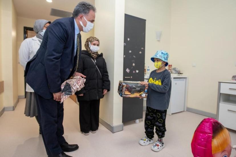 Rektör Akpolat, Onkoloji Hastanesi’ndeki minik hastaları hediyelerle sevindirdi