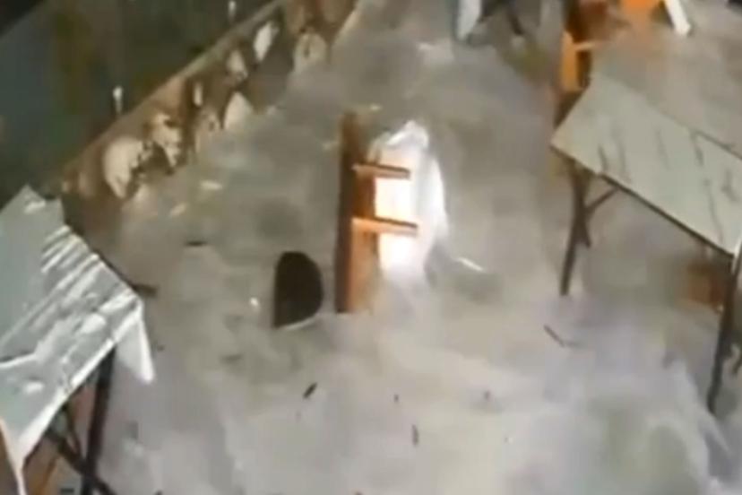 Restorana vuran dev dalganın çalışanı sürüklendiği anlar kamerada