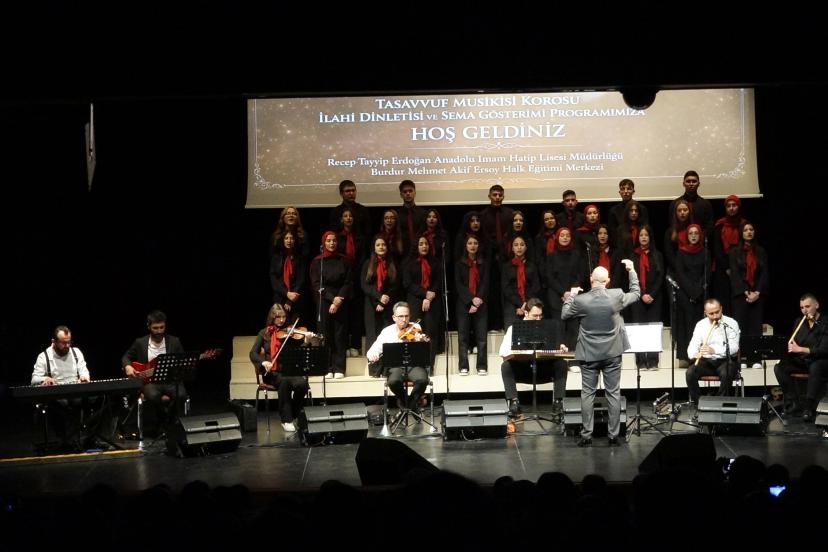 Mehmet Akif Ersoy Üniversitesi Konferans ve Sergi Salonu'nda düzenlenen etkinliği İl Milli Eğitim Müdürü Mehmet Necmeddin Dinç, Halk Eğitim Merkezi Müdürü Hamit Kayacıoğlu ile STK temsilcileri, öğretmenler ve öğrenciler ilgiyle izledi. Saygı duruşu, İstiklal Marşı ve Kur'an-ı Kerim okunmasıyla başlayan etkinlikte Recep Tayyip Erdoğan Anadolu Lisesi öğretmen ve öğrencilerinden oluşan müzik öğretmeni Mehmet Özer yönetimindeki koro tasavvuf müziği eserleri ve ilahiler seslendirdi. Etkinlikte, Halk Eğitimi Merkezi kursiyerlerinin eserlerinin yer aldığı hat, tezhip ve ebru sergisi açıldı.