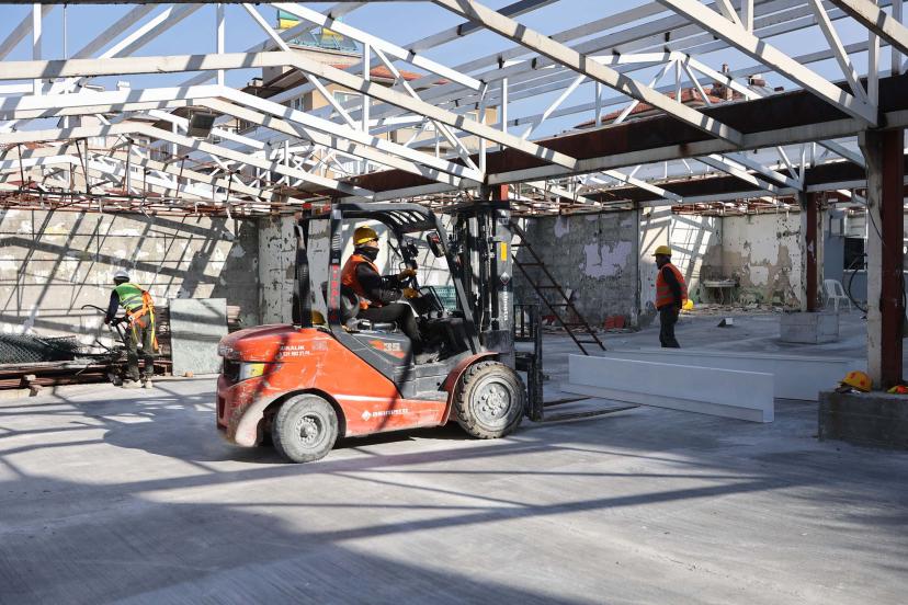 Yatağan ilçesinde, Muğla Büyükşehir Belediyesi tarafından pazar yerinde başlatılan bakım, onarım ve tadilat çalışmalarının sürdüğü bildirildi. Muğla Büyükşehir Belediyesi Etüt ve Proje Daire Başkanlığı tarafından yürütülen çalışmalar kapsamında pazar yerinin daha dayanıklı ve konforlu bir yapıya kavuşturulmasının hedeflendiği belirtildi. Proje kapsamında mevcut çelik yapının ilave çelik kolonlarla güçlendirildiği, yeni makas kirişler kullanılarak çatı yüksekliğinin yaklaşık 1 metre artırıldığı ifade edildi. Pazar yeri zemininde yürütülen çalışmalar kapsamında 2 bin 125 metrekare alana çelik hasır serimi yapıldığı, ardından 245 metreküp saha betonu dökülerek yüzey sertleştirici uygulaması gerçekleştirildiği ve zemin yüzey işlemlerinin tamamlandığı kaydedildi. İş yerlerinde sürdürülen mevcut çelik yapı söküm çalışmalarının tamamlanmasının ardından duvar ve zemin tadilatlarına başlanacağı belirtildi.