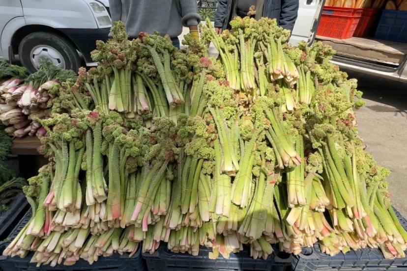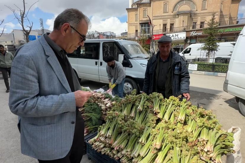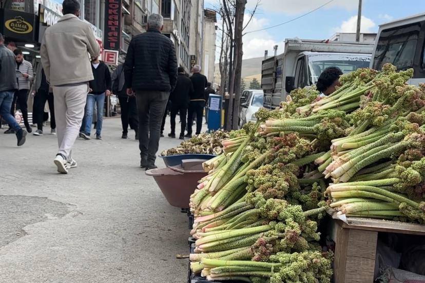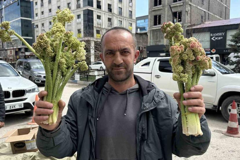Hakkari ve ilçelerinde baharın müjdeleyicisi olarak bilinen, yüksek rakımlı dağlarda doğal olarak yetişen ve halk arasında "yayla muzu" olarak adlandırılan uçkun (revas), pazar tezgahlarındaki yerini alırken, sezonun ilk ürünleri ise destesi 150 liradan satılıyor.