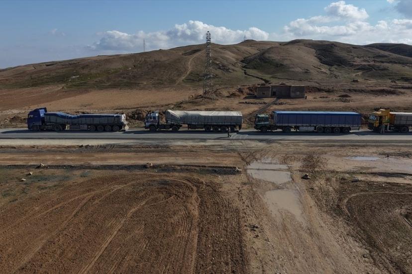 BM araçlarının eşlik ettiği 23 kamyonluk gıda malzemesini Kamışlı'ya ulaştıran yardım tırları, terör örgütü YPG'nin işgalindeki bölgelerden geçerek Suriye hükümetinin kontrolündeki bölgelere doğru hareket etti.