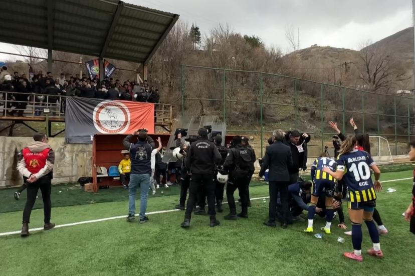 HAKKARİ (İHA) – Turkcell Kadın Futbol Süper Ligi’nin 24. haftasında oynanan Yüksekova Spor Kulübü ile Fenerbahçe arasında oynanan karşılaşmanın ilk dakikalarında çıkan gerginlik, güvenlik güçlerinin müdahalesiyle sonlandırıldı.